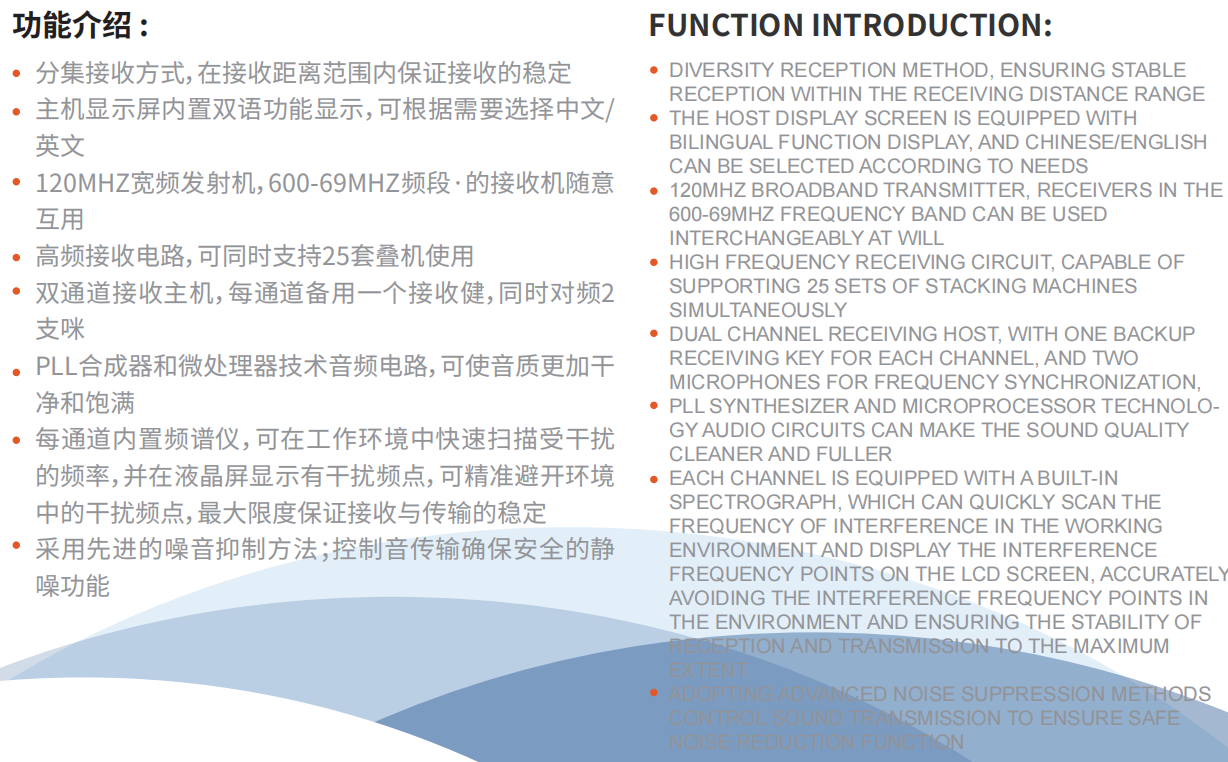 U段雙通道,分集接收,32個預(yù)設(shè)頻點