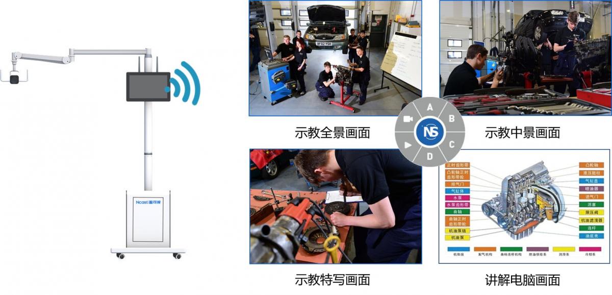 實(shí)訓(xùn)教學(xué)一體機(jī)高度集成化,免安裝免布線,集無(wú)線傳輸、錄制、直播、點(diǎn)播、數(shù)字音頻處理、無(wú)線投屏等功能于一體,人性化操作,簡(jiǎn)單方便,快捷高效。專為各種實(shí)訓(xùn)場(chǎng)所、操作車間打造的一套全覆蓋移動(dòng)式拍攝系統(tǒng),支持多個(gè)機(jī)位組成對(duì)拍攝區(qū)域的多角度高清拍攝,專業(yè)級(jí)遠(yuǎn)距離無(wú)線傳輸技術(shù)(5.8G)減少因環(huán)境因素造成的視頻傳輸不穩(wěn)定現(xiàn)象;底部采用萬(wàn)向滾輪和儲(chǔ)物箱結(jié)構(gòu),配備萬(wàn)向搖臂與15.6寸高清觸摸顯示屏,可通過實(shí)時(shí)畫面調(diào)整攝像機(jī)的拍攝角度。